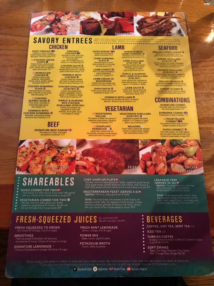 Palm Palace is a Middle Eastern-Mediterranean restaurant in Ann Arbor, MI, offering a range of delicious dishes with vegan and vegetarian options. With a diverse menu including tapas, appetizers, and salads, Palm Palace caters to different tastes. Customer reviews praise the generous portions and attentive service, highlighting dishes like the hummus, falafel sandwich deluxe, and chef sampler platter. The restaurant also accommodates special dietary needs, as seen in a review mentioning excellent service for a guest with a severe shellfish allergy. The atmosphere is praised for its charm and beauty, creating a calming dining experience. Overall, Palm Palace impresses with its flavorful and authentic Middle Eastern cuisine, making it a must-visit spot for food enthusiasts in the area.